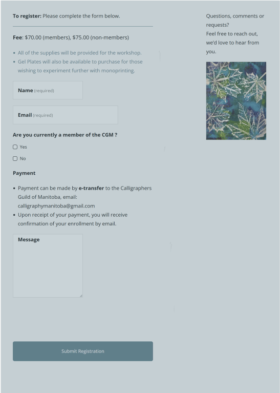 This class will be a hands-on exploration of the many artistic possibilities of gel plate printing, with particular emphasis on how it can be paired with calligraphy.