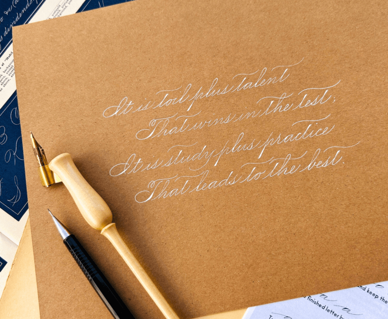 Kalo is an incredible teacher with a very clear teaching style who manages to simplify this calligraphic hand so that anyone can grasp its fundamentals, and develop the skills required to produce its graceful forms. This quote taken from an article in the Home Journal on Kalo, captures the essence of what she shares with her students in every class she teaches: